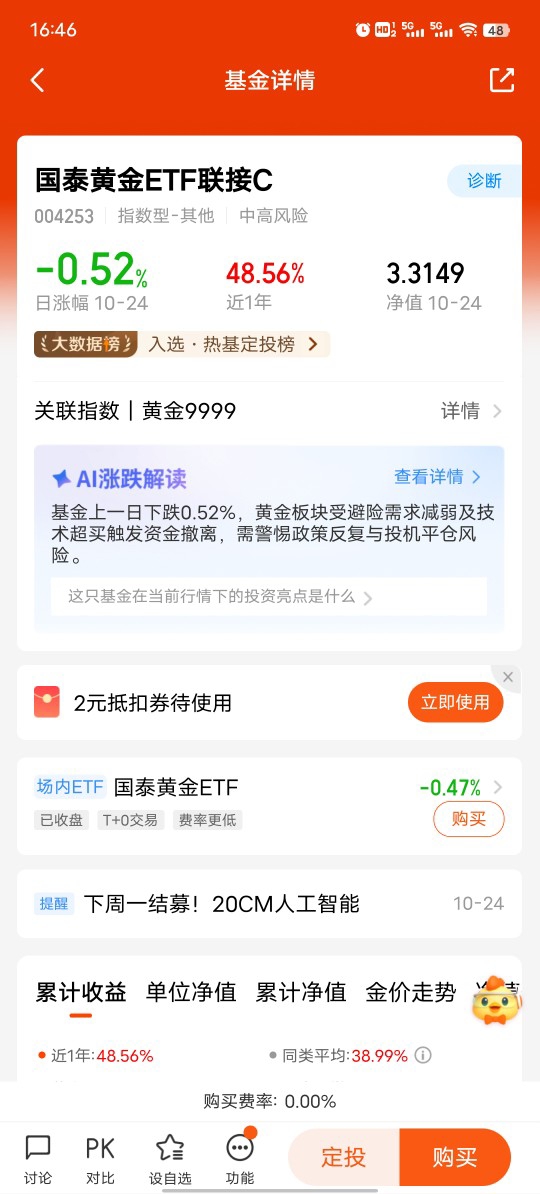 我认为可以买,尤其是黄金,我认为黄金本轮的上涨周期远未结束,通过历史数据可以查到,黄金的历次上涨周期都达十年,而本次黄金已连涨4年,还远未到下跌周期,而且影响黄金的因素有很多,美联储的降息周期、供需关系、地缘政治等。所以我认为黄金还会上涨。$国泰黄金ETF联接C$ @国泰基金