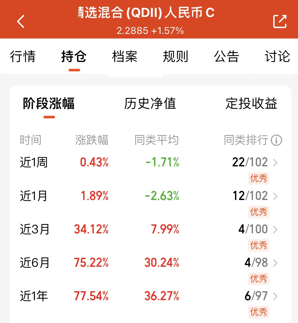 近期的市场走势还是挺稳健的,我觉得我们还是不能掉以轻心,不能把所有的鸡蛋都放在同一个篮子里。在市场中应该A股港股和海外都可以配置一点,我最近一直看好的$易方达全球成长精选混合(QDII)人民币C$ 这只基金,他的投资策略是投全球科技的, A股港股美股都能投!灵活规避政治风险,而且还可以同时把握多个市场的科技成长机遇。业绩我看了一下做的也是挺稳定的。