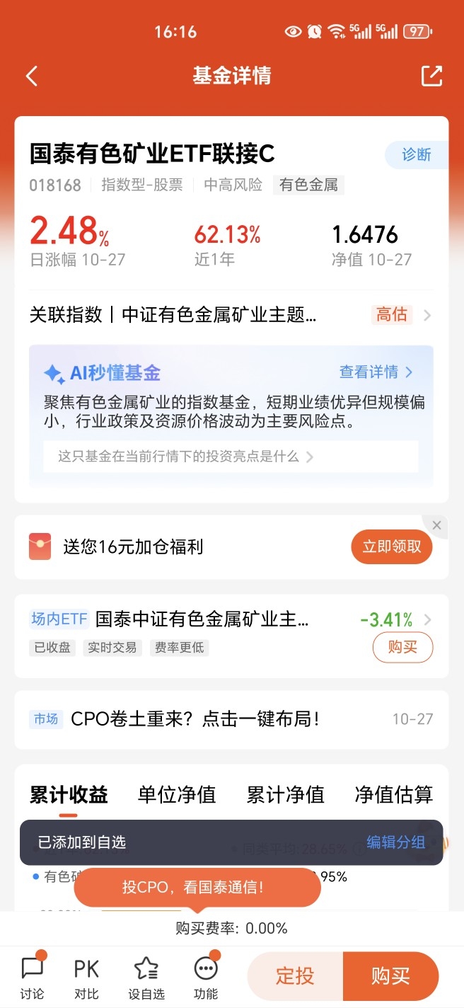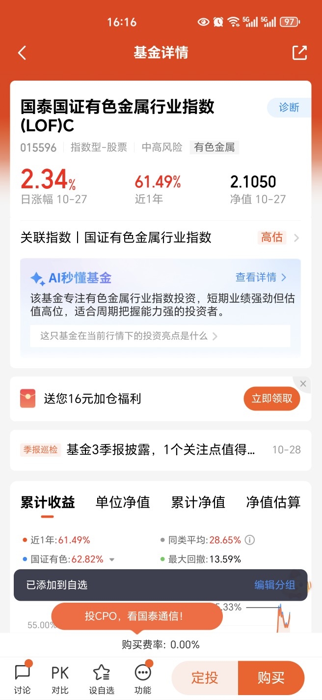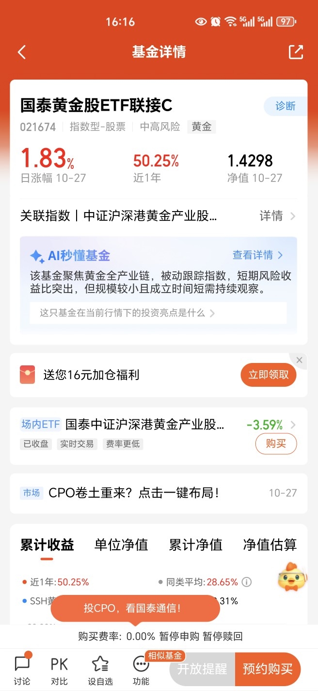 #金属板块还能买吗#普通投资人选择投资国泰黄金ETF联接C基金。