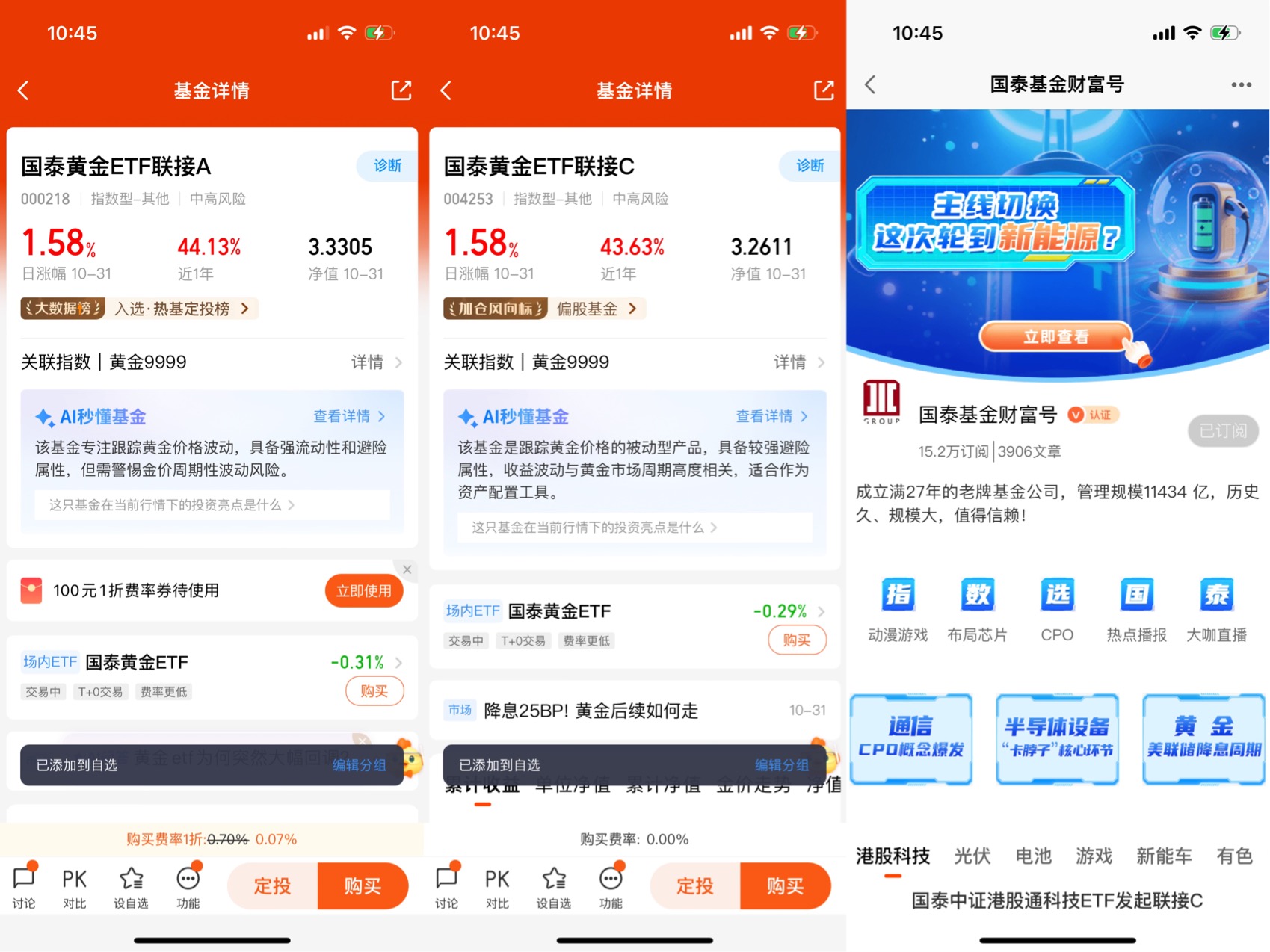 将国泰黄金ETF联接C纳入投资组合,能够有效分散权益市场波动的风险,发挥“压舱石”的作用。尤其是在经济周期与货币政策面临转折的当下,配置黄金资产不失为一种前瞻性的战略选择,有助于在复杂市场环境下平滑组合波动,守护长期投资成果。@国泰基金