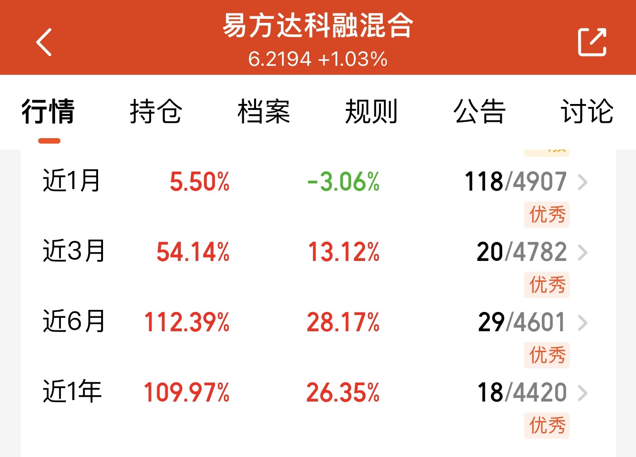 易方达科融混合策略优质,长期表现稳健,能跑赢大盘,并在牛市中有效放大收益。相比押注单一科技赛道的产品,它不仅布局科技板块,还兼顾新能源等热门赛道,实现多元化均衡配置。牛市中,市场轮动快、热点频繁,量化投研团队高频调仓,灵活把握结构性机会,无惧行业轮动,持续跑赢市场。