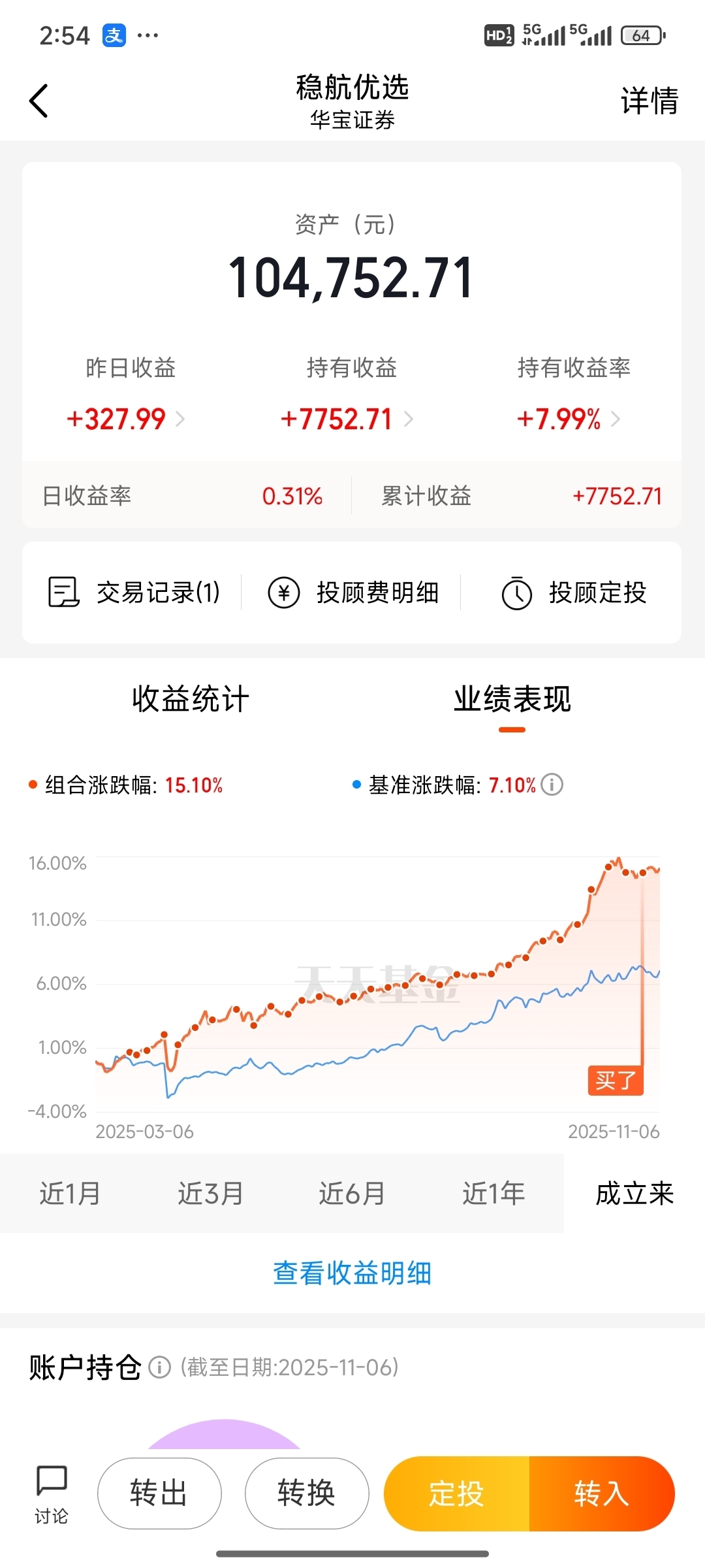 截止目前稳航优选估值约为-0.13%左右。今天持仓不动!