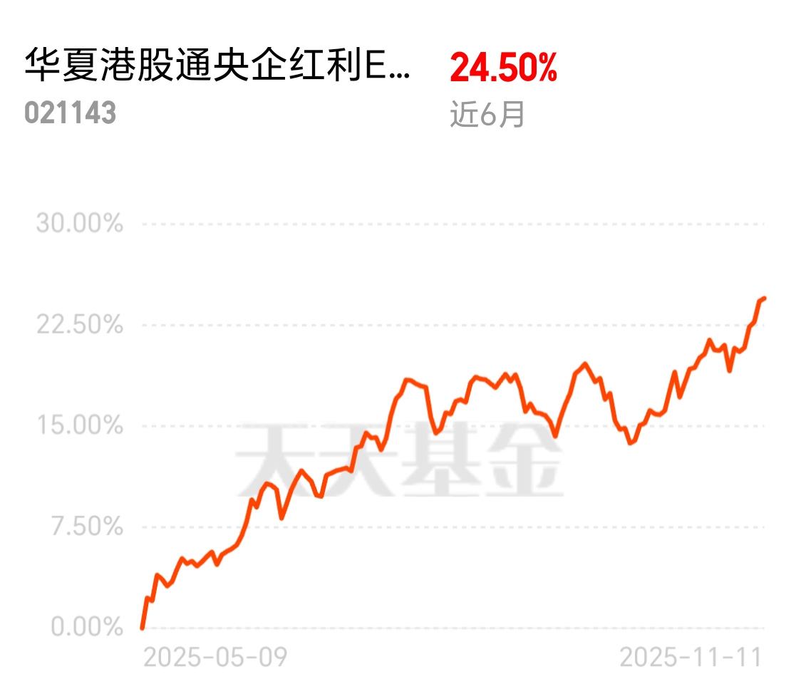 年前计划重仓直接避险到岁末,这里近6个月收益24%+,近7天有6天正收益,布局都是高股息央企,避险增收小能手$华夏港股通央企红利ETF联接C$