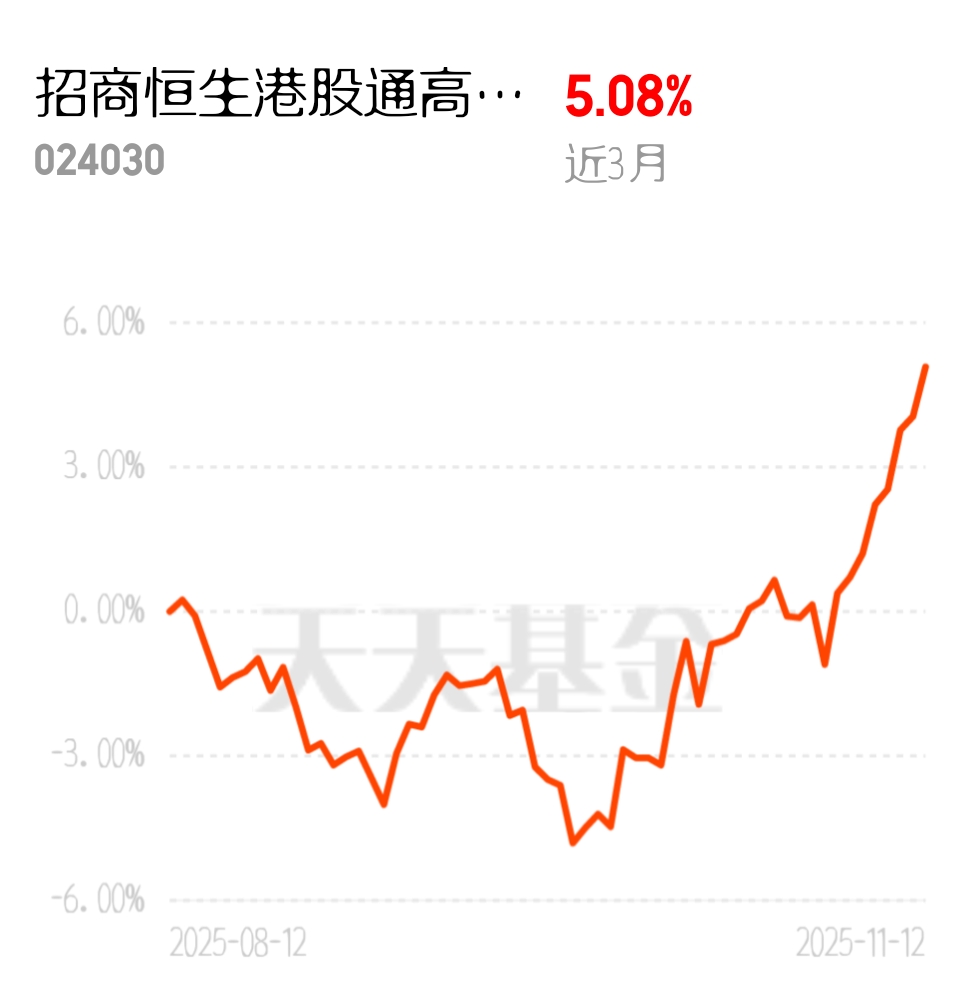 利率下行压力加大,闲钱想稳健增值越来越难,高股息低波动资产成了香饽饽。招商恒生港股通高股息低波动ETF联接C近3个月收益5.08%,跟踪的指数股息率达6%,金融地产权重超60%,低波动还低费率,定期评估分红机制,长期持有做底仓很划算。
