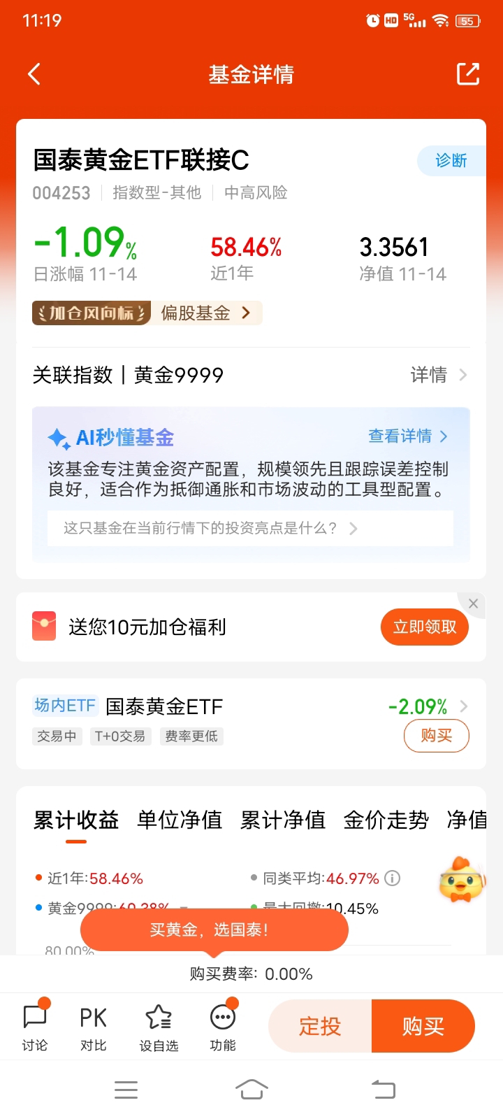 也正是因为这些,我才盯上了国泰黄金ETF联接C。这只基金本身就是专注黄金配置的,规模不小,跟踪误差也控制得不错,作为工具型产品很合适。我不打算一次性重仓,而是逢低分批布局——毕竟现在的思路很明确:权益资产用来抓成长机会,黄金就当“防守位”,一边积极把握科创、消费这些赛道的机会,一边用黄金对冲单一资产的波动风险,刚好能形成“进攻+防守”的均衡组合。
