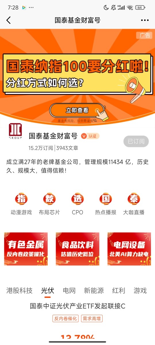 总的来说,我觉得黄金冲新高是大概率事件,只是不会一蹴而就。对咱们普通投资者而言,国泰黄金联接C这样的基金是参与黄金行情的优质工具,低门槛、高灵活度,还能精准跟踪金价。只要把握好“不追高、分批买、控仓位”的原则,就能在这波黄金行情里,既享受收益,又守住风险底线。@国泰基金