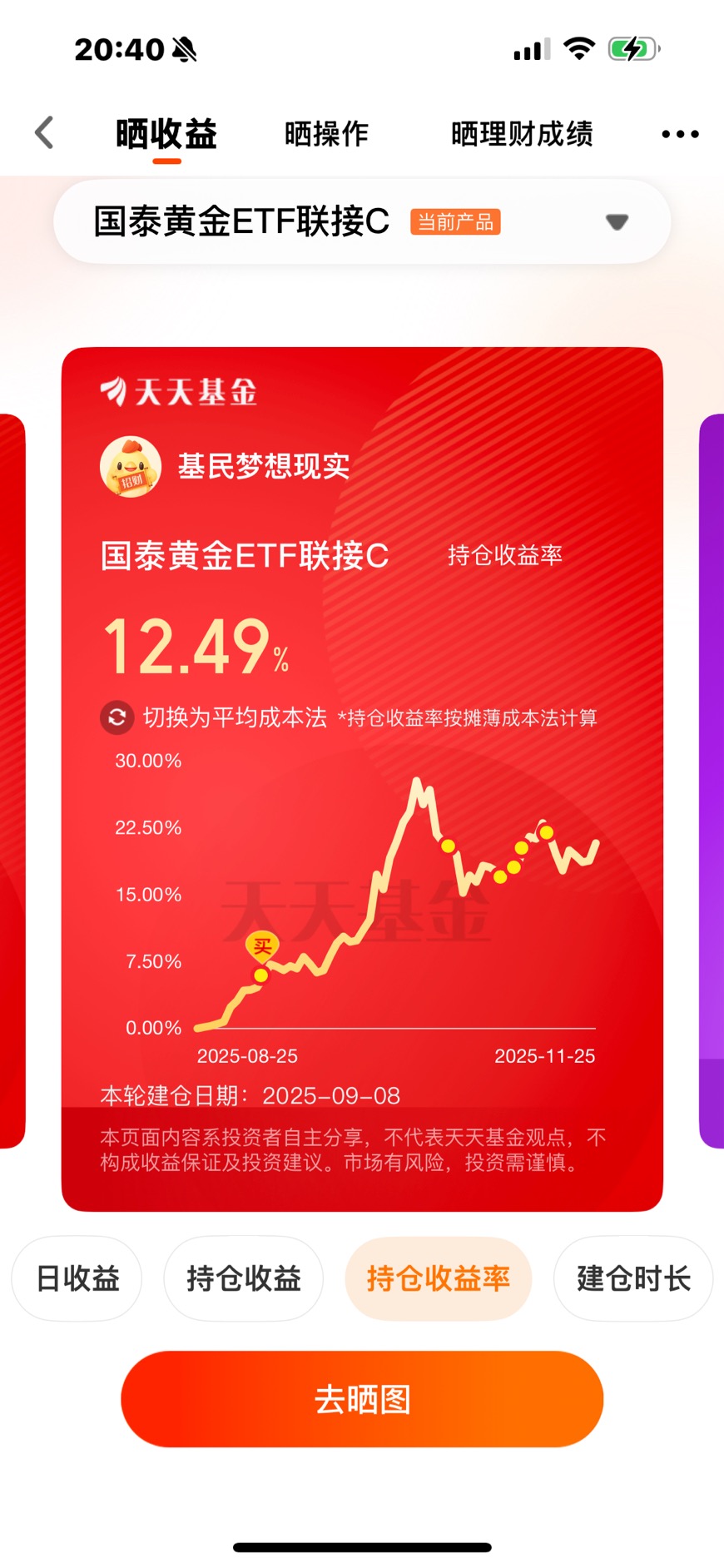 均衡型搭子(平衡收益与风险):可构建“国泰黄金ETF联接C+短债基金”的组合。短债基金如汇安永利30天持有期短债,最大回撤极低,能提供稳健收益缓冲;而该黄金基金负责对冲地缘风险、通胀风险,两者搭配既能靠短债平滑波动,又能借黄金应对极端市场行情,适配多数普通投资者的稳中求进需求。@国泰黄金@晒收益