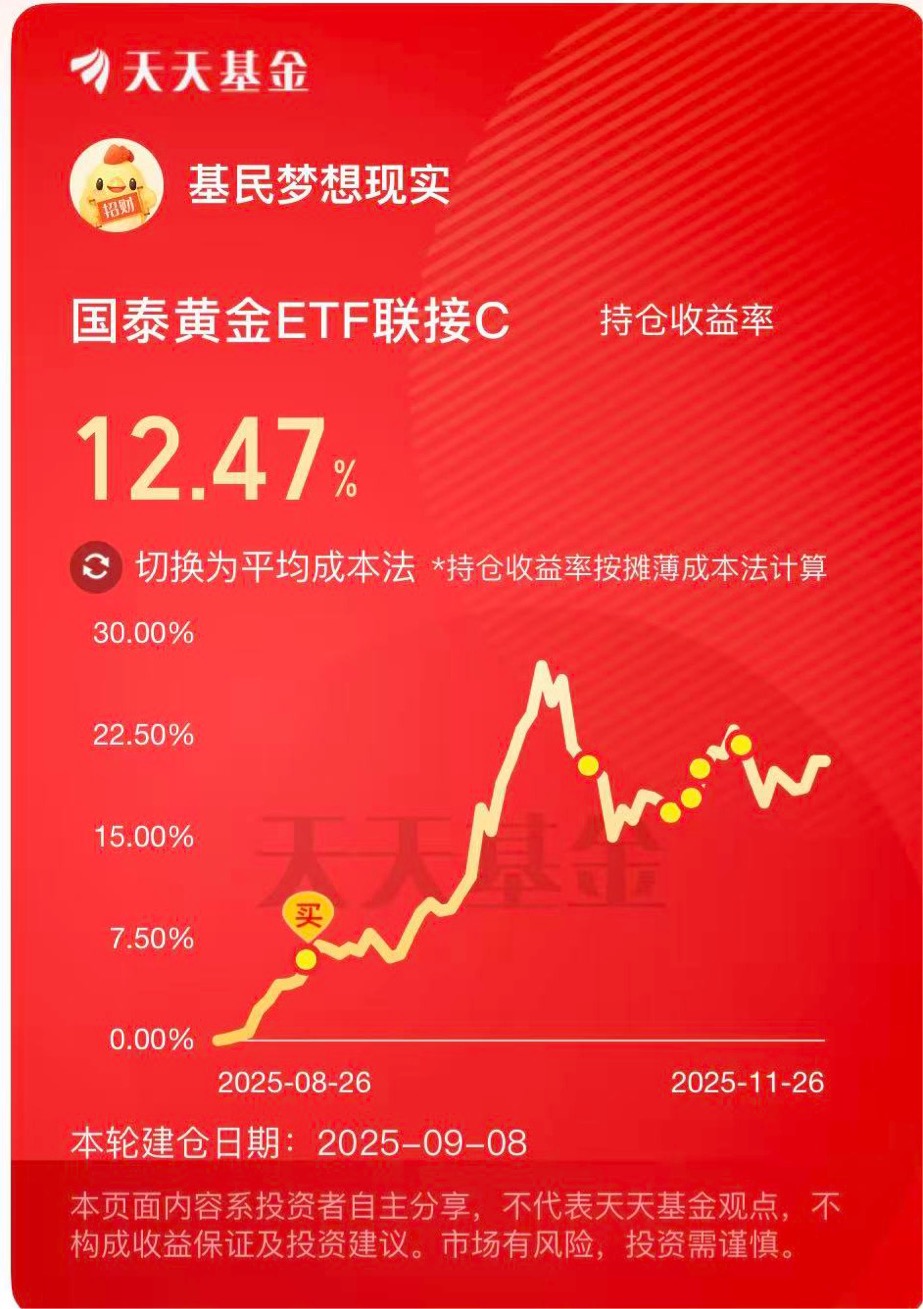 打卡第10天,我看好$国泰黄金ETF联接C$长期配置价值。近期市波澜起伏,但黄金