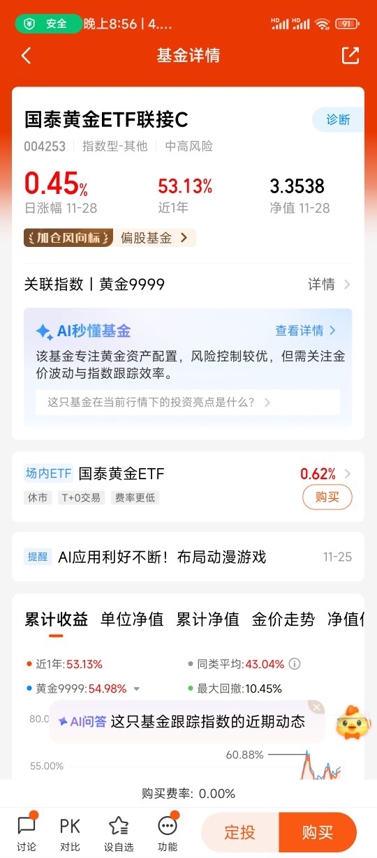 #金属板块还能买吗# #3800点的A股值得加仓吗?# $国泰黄金ETF联接C$