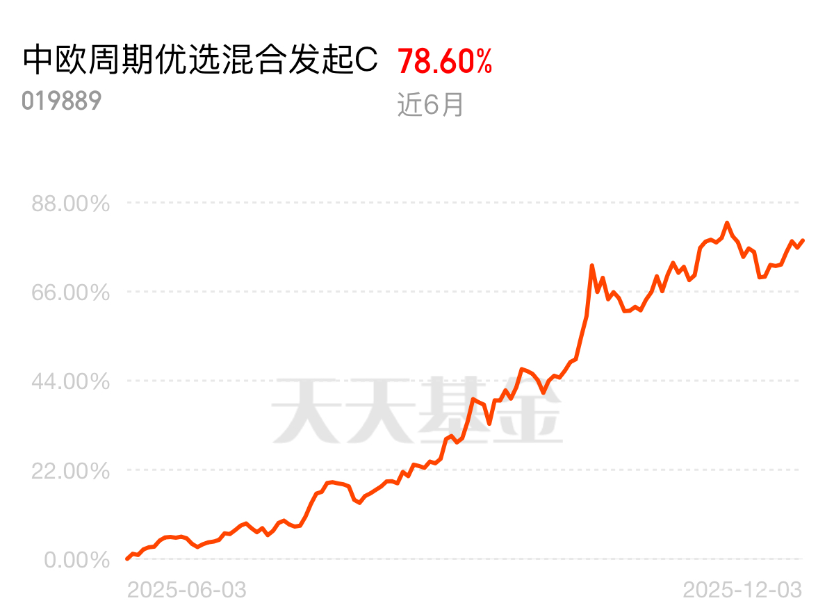 全球电网升级提速叠加 AI 数据中心建设火热,铜需求一路超预期,矿山产出却跟不上,供需缺口越拉越大。中欧周期优选混合发起 C 近 6 个月 78.60%,重仓有色资源股,直接吃铜价上涨红利。