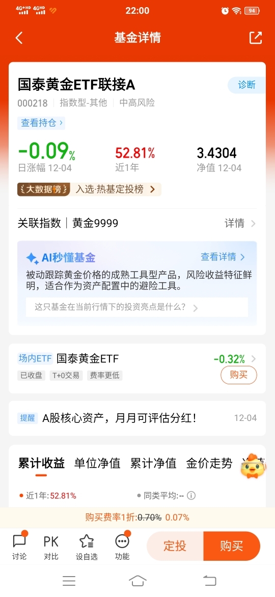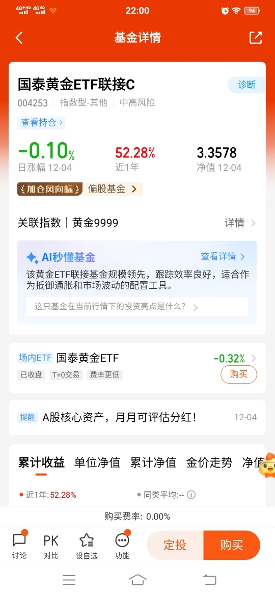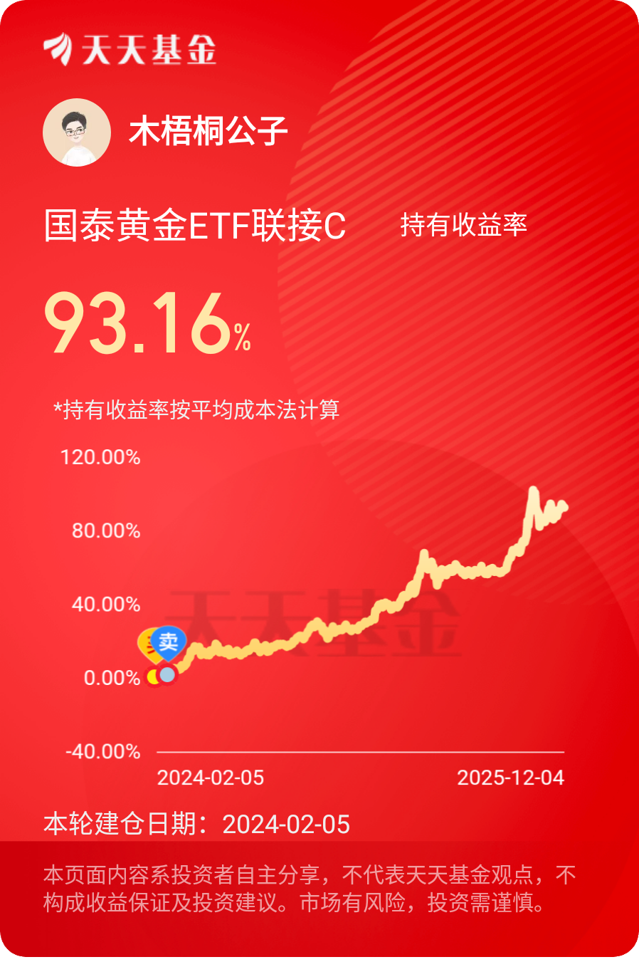 所以,木同学认为$国泰黄金ETF联接C$ 在当前震荡上行的黄金市场中具备稳健的长期投资价值,尤其是C类份额的"零申购费+高流动性"特性,使其成为当前配置黄金资产的优选。 @国泰基金