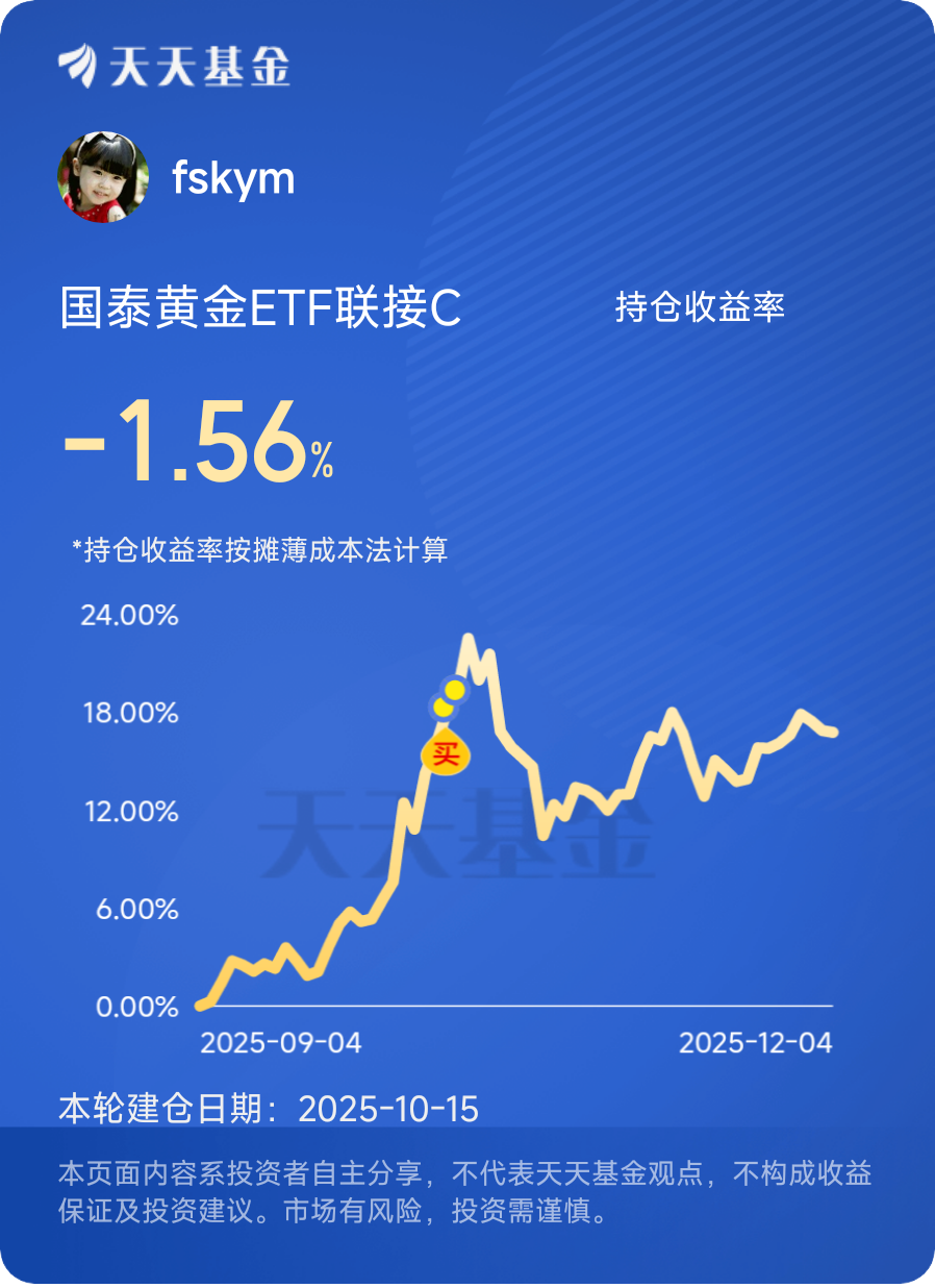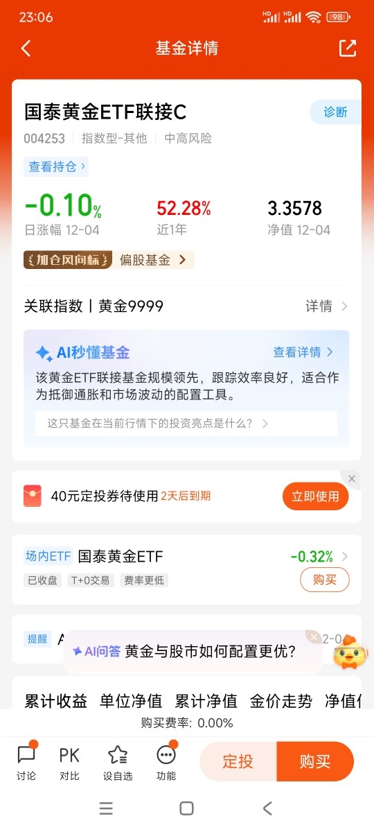 12月4日,第四天打卡发帖,今天$国泰黄金ETF联接C$跌0.10%,为什么今天