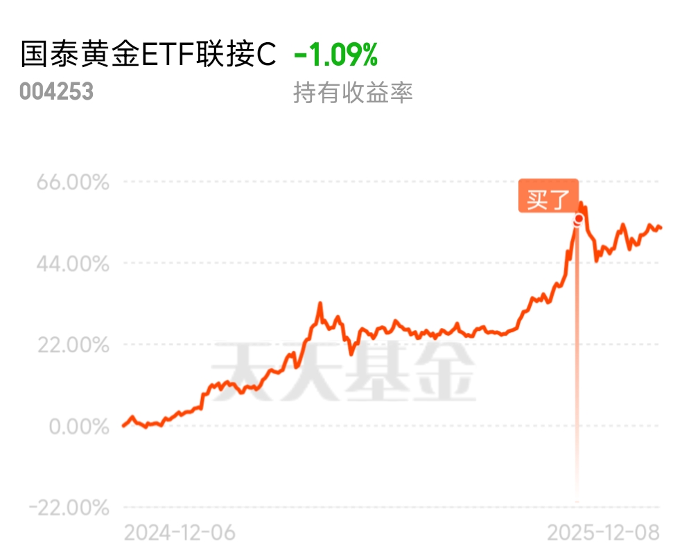 12月8日,第八天打卡发帖,今日$国泰黄金ETF联接C$跌0.24%,为什么今天