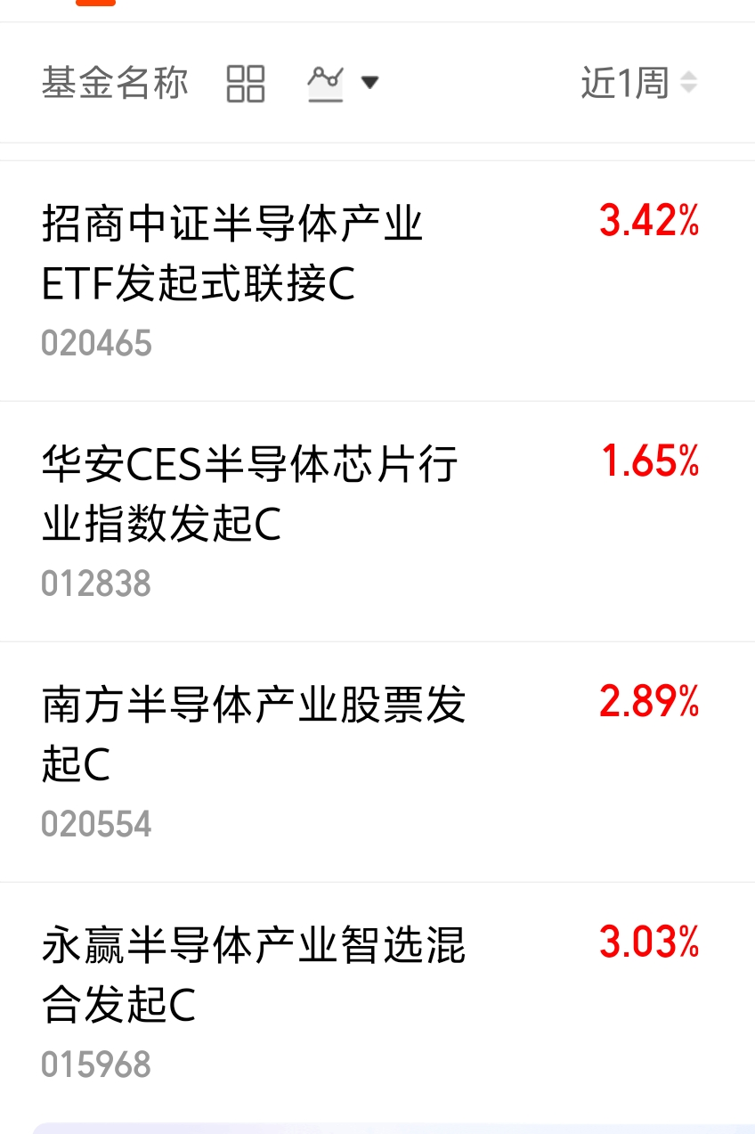大盘今天震荡调整,三大指数涨跌不一,黄金今天小幅调整,半导体近期表现还不错,$招商中证半导体产业ETF发起式联接C$ 近一周涨了3.42%,表现还不错!