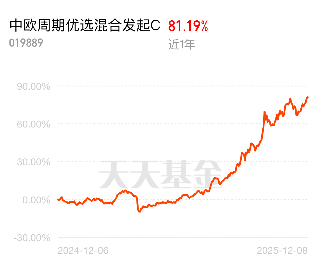 震荡市选周期才稳!中欧周期优选 C 近 3 月涨 32.33%、近 1 年 81.19%,同类第一!回调是倒车接人,政策 + 降息利好,铜锂钴需求旺,赶紧冲!$中欧周期优选混合发起C$