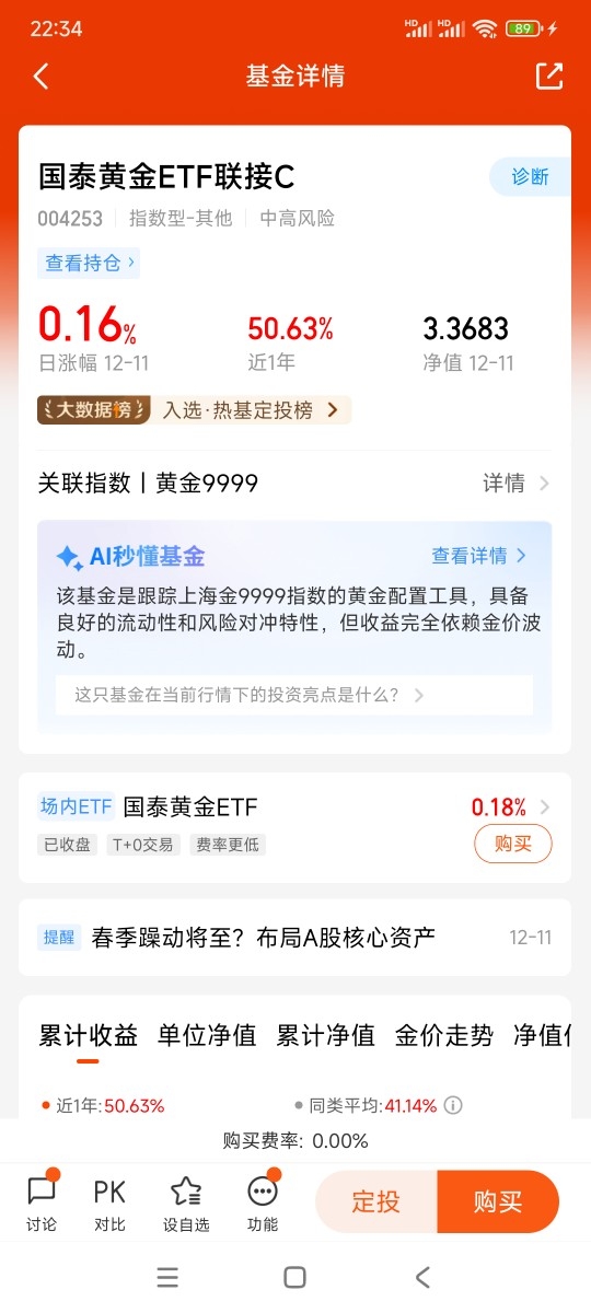 12月11日,第十一天打卡发帖,今日$国泰黄金ETF联接C$涨0.16%,其实今