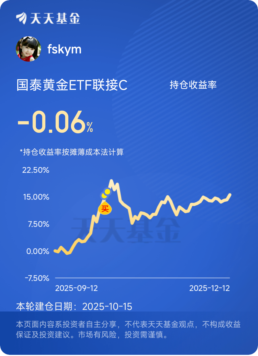 12月13日,第十三天打卡发帖,$国泰黄金ETF联接C$本周上涨0.79%,刚过