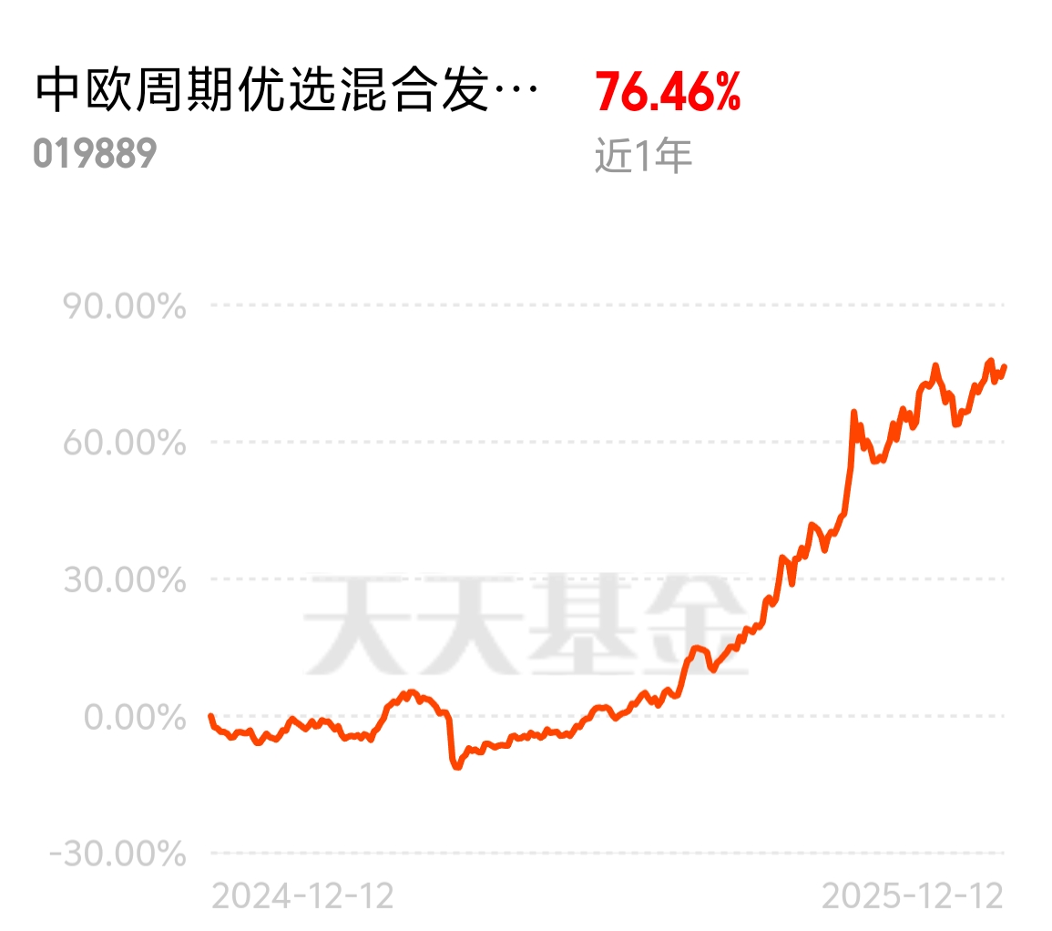 美联储 12 月又降息 25 个基点,美元走弱带火大宗商品,铜价都在往上冲。中欧周期优选混合发起 C 近 1 年 76.46%,多区间跑赢同类,业绩数一数二,短期配置正当时。$中欧周期优选混合发起C$