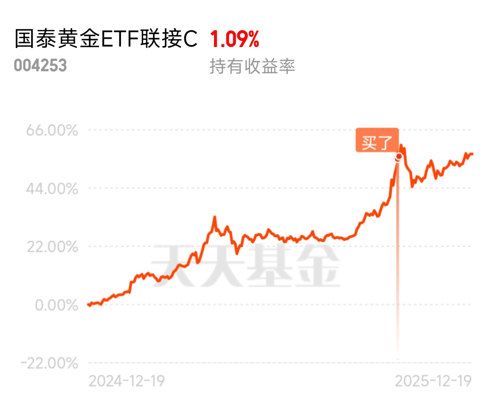 12月20日,第二十天打卡发帖,这周$国泰黄金ETF联接C$出现强力上涨趋势,上