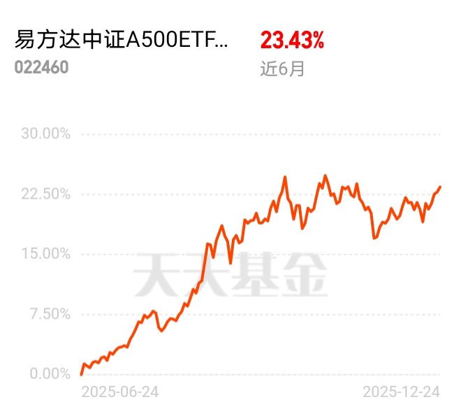 新质生产力赛道火热,中证 A500 新兴产业占比近 50%,潜力十足。易方达中证 A500ETF 联接 C 近 6 月 23.43%,作为场外便捷通道,紧密跟踪指数,剩余仓位投高流动性资产,应对赎回不慌。$易方达中证A500ETF联接C$