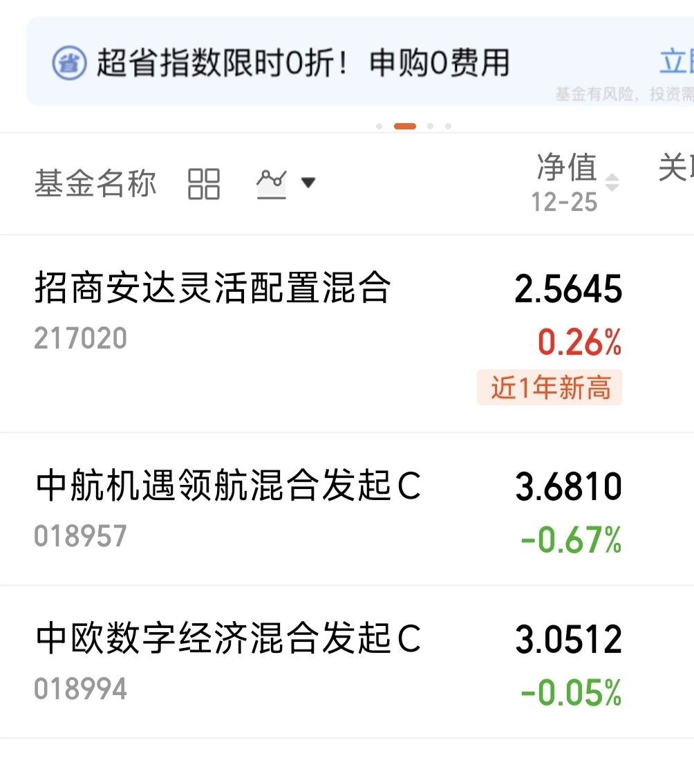 $招商安达灵活配置混合$ 这只主动的科技混合基金。昨天依然稳定上涨了0.26%,长期稳定爬坡的能力强,期待继续突破。
