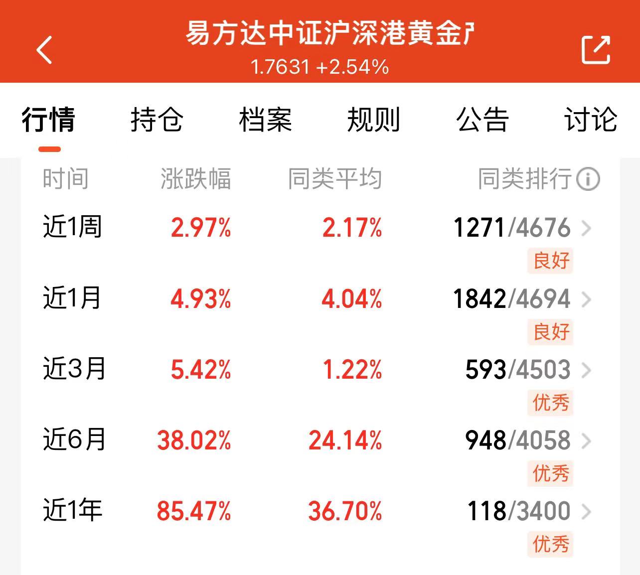 今日黄金与有色金属大幅走强,国际金价突破4400美元/盎司后维持高位震荡,降息预期升温、避险需求与通胀逻辑形成共振。在此背景下,易方达黄金股近一年业绩位居同类前列。随着金价中枢上移、矿企成本相对稳定,黄金股盈利弹性逐步释放,相关基金的中长期配置价值进一步凸显。