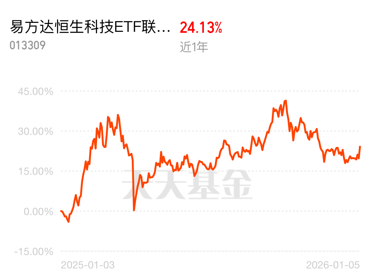 南向资金持续净流入港股科技领域,政策支持下科技自立自强成主线。易方达恒生科技 ETF 联接 (QDII) C 近 1 年 24.13%,费率划算跟踪精准,适合没时间盯盘的打工人做资产配置。