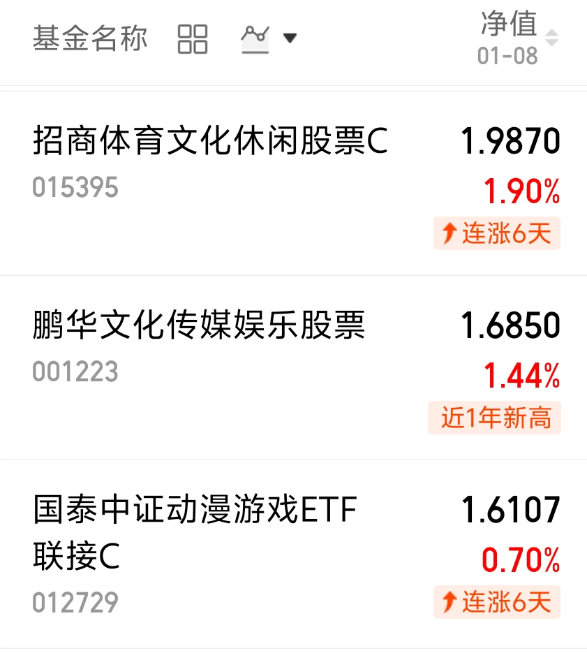 大盘昨天震荡调整了,科技等板块回落,传媒昨天表现还不错呢,$招商体育文化休闲股票A$ 昨天涨了1.94%,C类昨天涨了1.90%!