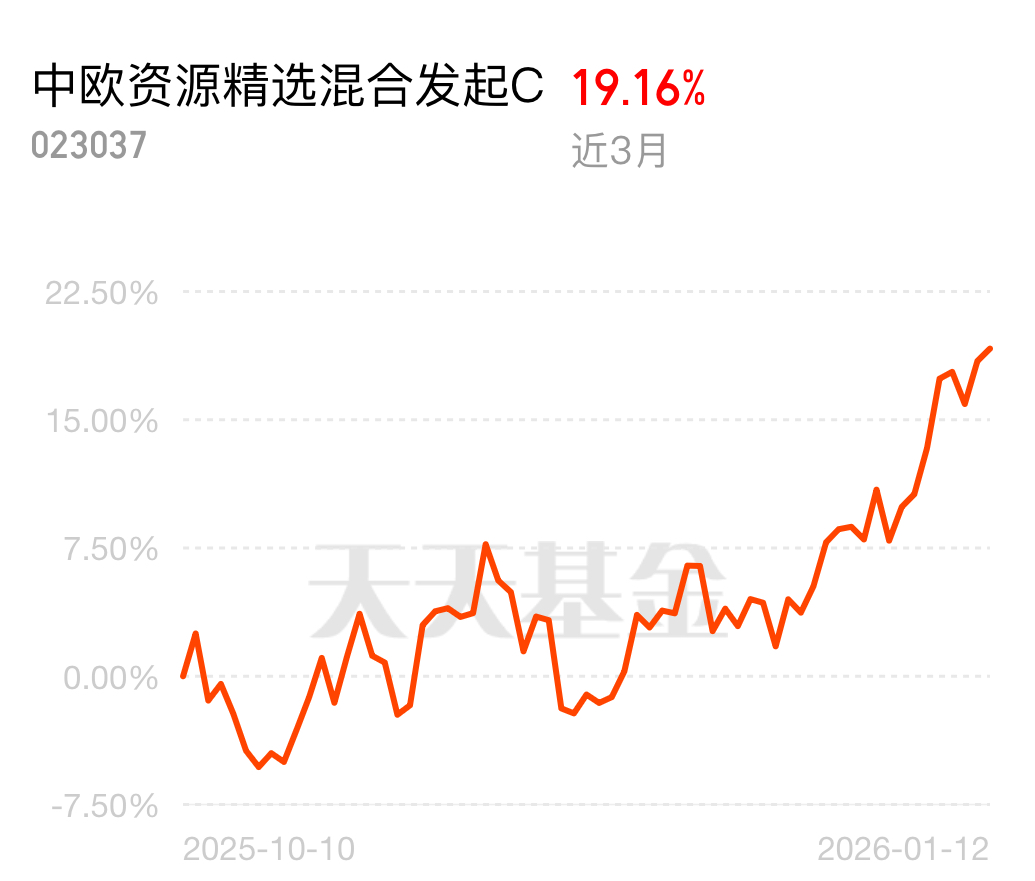 科技热点难把握,不如选有供需支撑的周期资源。$中欧资源精选混合发起C$ 近 3 月 19.16%,在同类基金里排名靠前,覆盖多环节且配置灵活,作为压舱石超靠谱,稳稳拿收益。