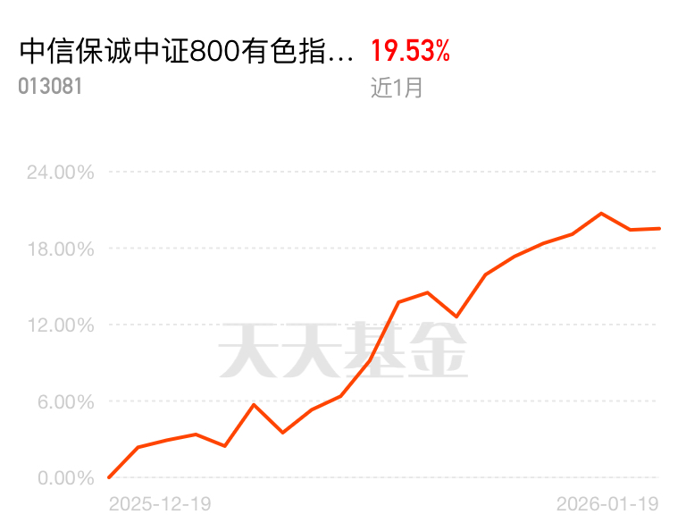 资金借回调换筹,有色板块持仓成本抬高,后续上涨更有力。中信保诚中证 800 有色指数 (LOF) C 近 1 月涨 19.53%,加仓布局,跟上成本抬升节奏。$中信保诚中证800有色指数(LOF)C$