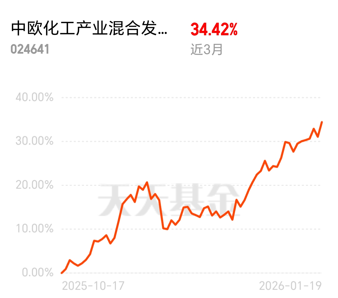 资金加仓化工 ETF 规模破 50 亿,行业景气往上走,别追高!低位化工逻辑相近更踏实,中欧化工产业混合发起 C 近 3 月 34.42%,主动管理布局上游资源。$中欧化工产业混合发起C$