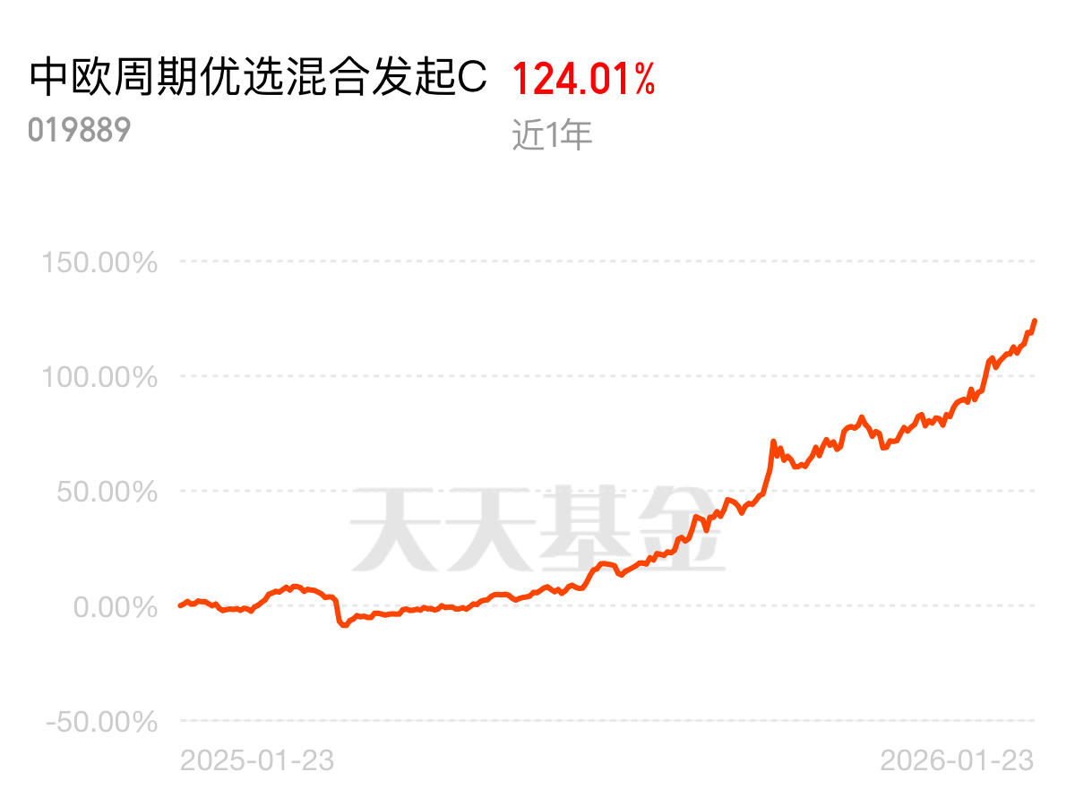 $中欧周期优选混合发起C$把黄金有色的行情吃透了,近1年124.01%的收益稳稳
