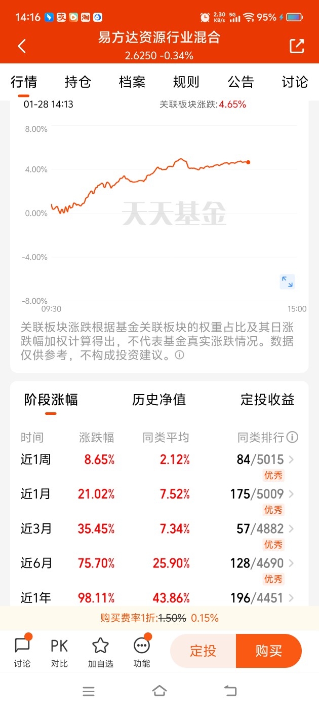 国际金银价续创历史新高。有色金属,小金属,贵金属也跟着持续飙升。最近在车上的小伙伴们真是赢麻了。$易方达资源行业混合$ 今天又是大涨的一天,目前股指涨幅+4%,真是太优秀了!其主要持仓有色资源,前十大重仓有色资源占比100%。近年来国际局势紧张,加持关税战。对周期资源类有一定利好作用,流星后市看涨