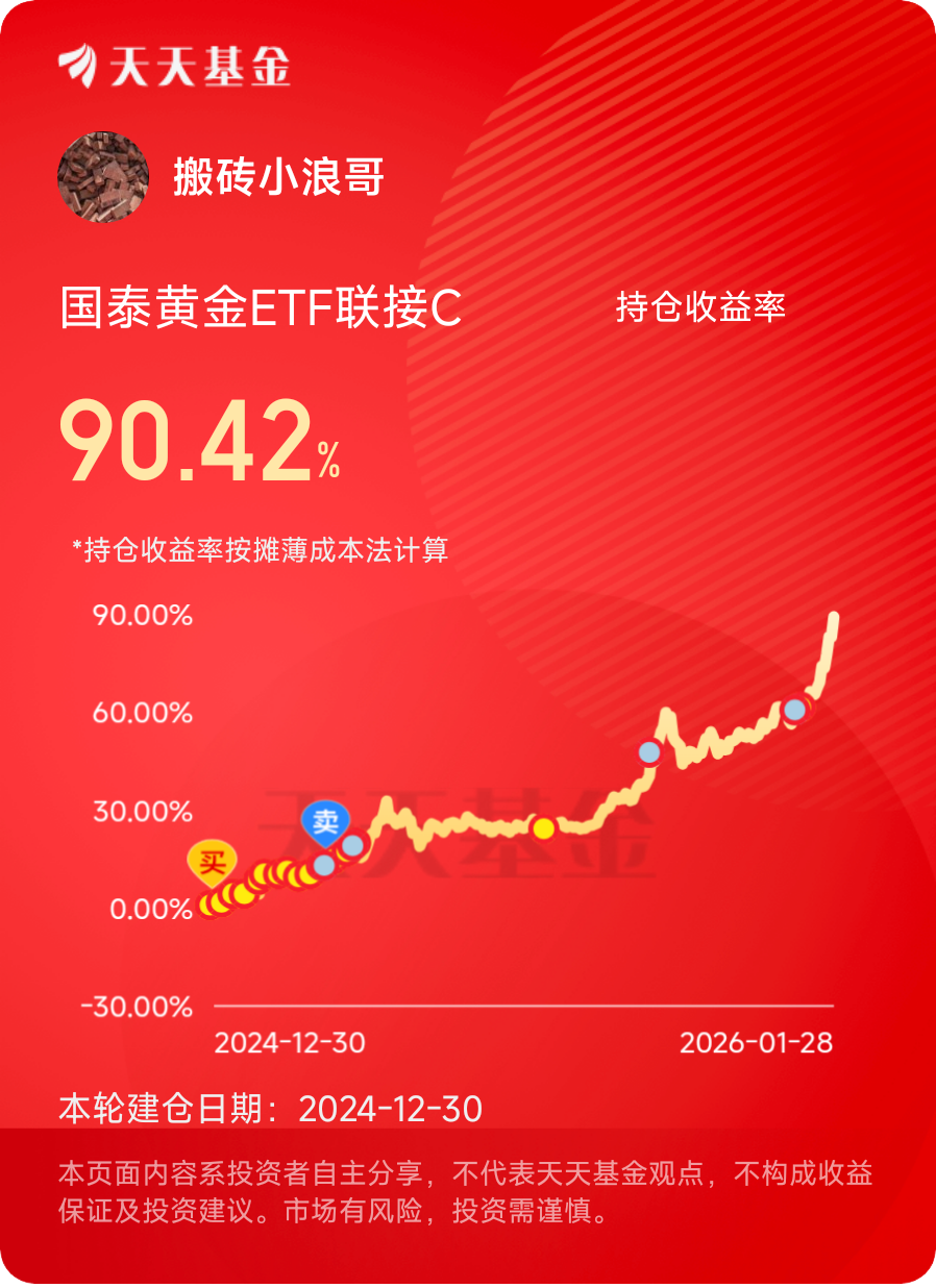 #继续新高!金价突破5200美元大关# #煤飞色舞!资源机会来了?# #段永平谈茅台:当前股价“真的不贵”# #2026我的新年投资计划# #1月基金投资策略# $国泰黄金ETF联接C$ $国泰黄金股ETF联接C$ $国泰黄金ETF联接A$ $国泰黄金股ETF联接A$
