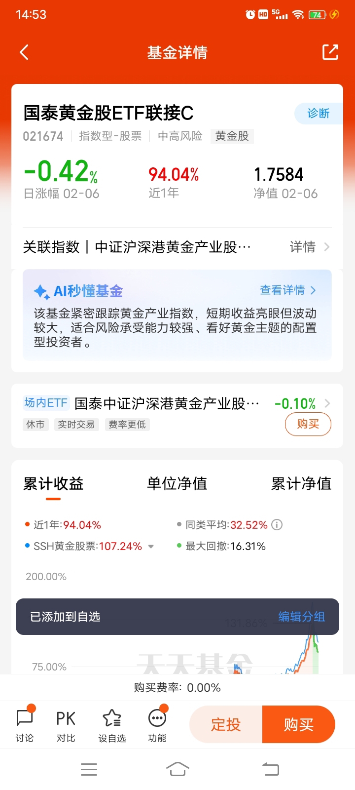 当然了,风险也不能忽视。比如美联储要是突然推迟降息,或者美国经济数据超预期好,美元可能会反弹,这会给板块带来短期压力。还有现在板块涨了不少,积累了很多获利盘,随时可能有回调。但从大方向看,我觉得只要降息周期、地缘风险、产业升级这些核心逻辑不反转,“三金”板块的上行趋势就还在。对我来说,黄金更适合作为压舱石长期配置,黄金股可以用来抓波段行情,而有色金属里的铜、锂这些品种,我会更关注供需格局好的龙头,分批布局$国泰黄金ETF联接C$ ,不追高,这样能平衡收益和风险。