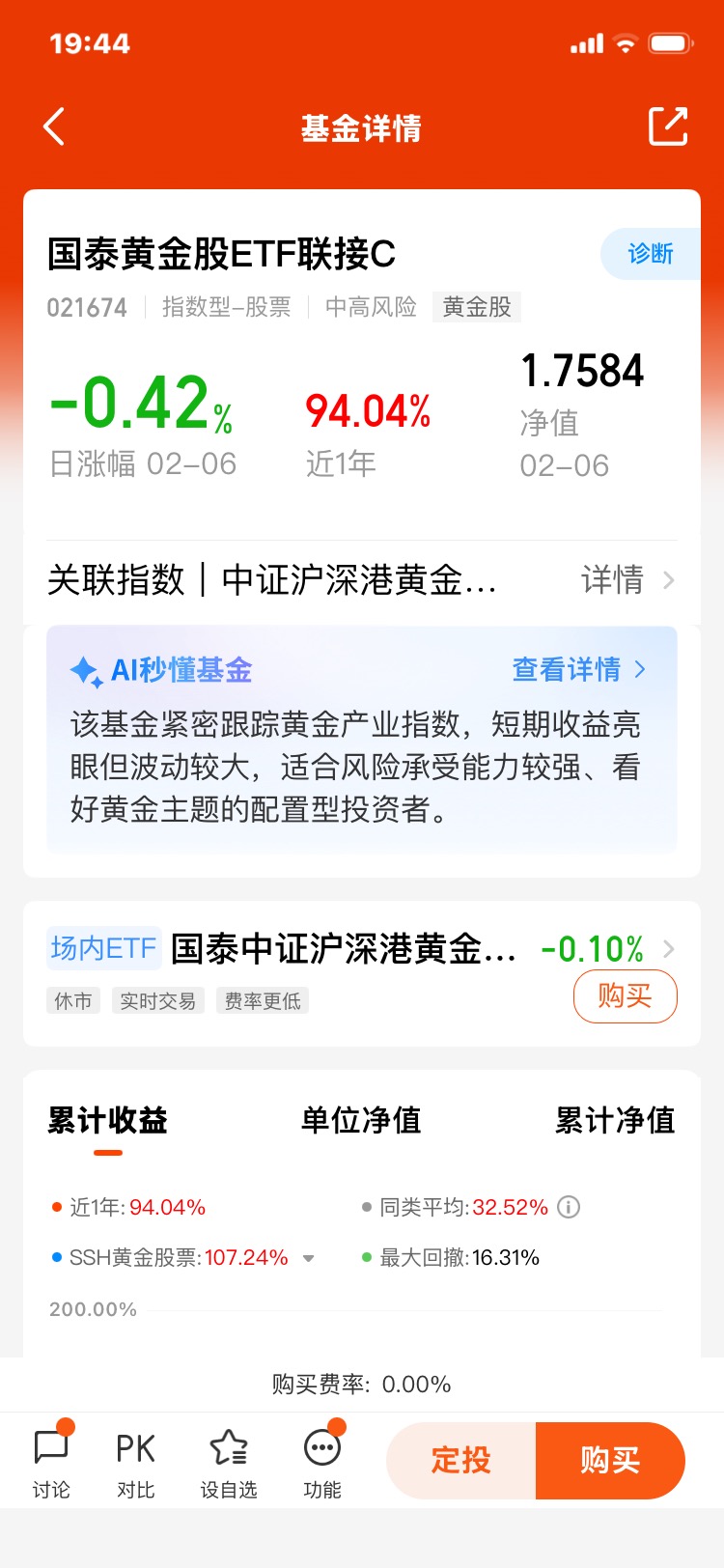 $国泰黄金股ETF联接C(OTCFUND|021674)$