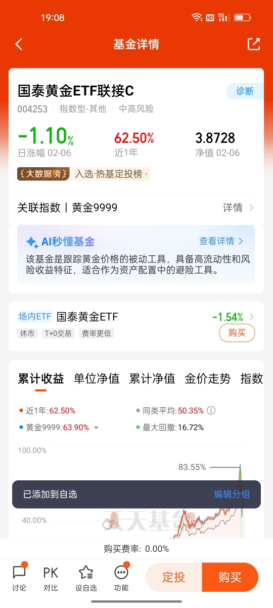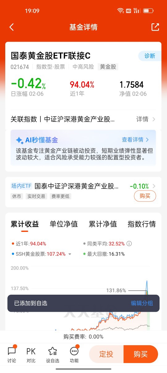 稳健型首选:$国泰黄金ETF联接C$ ——精准跟踪国内金价,资产配置的“压舱石”$国泰黄金ETF联接C$