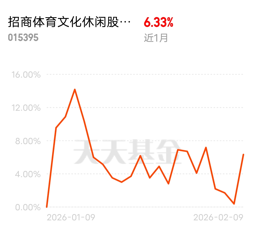 文体板块热度稳步上升,资金也在持续关注,短期回调只是蓄力调整!$招商体育文化休闲股票C$ 昨日收益近 6%,今日回调正是上车好时机,当下位置正合适,继续布局妥妥的。