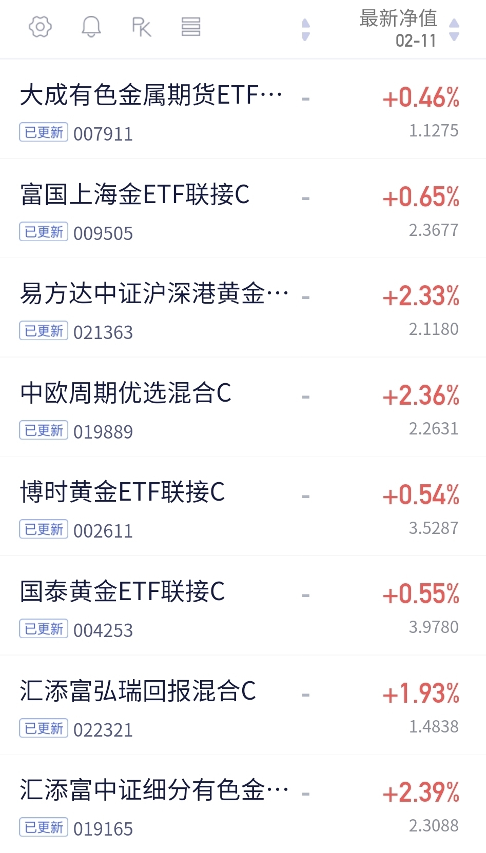 $易方达中证沪深港黄金产业股票指数发起式C$ 2.33%!