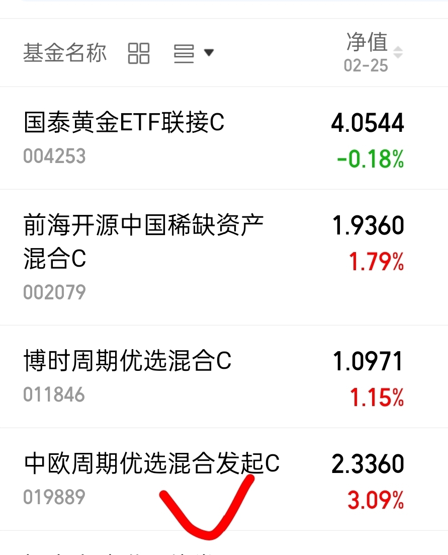 中欧资源精选混合C,涨3.09%,不错呀,近一年涨幅近129%,大幅跑赢指数,表现强劲。其持仓聚焦紫金矿业、洛阳钼业等资源龙头,覆盖采矿、制造全产业链,资源股景气上涨。基金经理叶培培擅长把握周期规律,主动管理能力强,看好资源板块长期机会。
