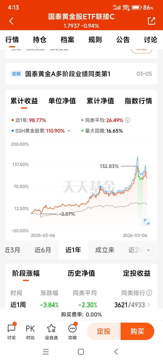 - 国泰黄金股ETF联接C(021674):一键布局黄金全产业链
