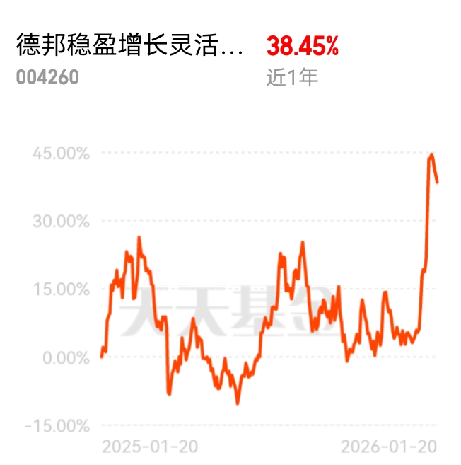 近期市场出现短期调整,不少投资者开始担心基金后续走势。但德邦稳盈增长灵活配置混合 A 近 1 年涨了 38.45%,长期业绩过硬。跌了一个点还可以,慢慢加筹码吧,还能涨的,行情才开始,这只基金的风控能力不错,回调就是加仓良机,跟着它大概率能穿越周期。
