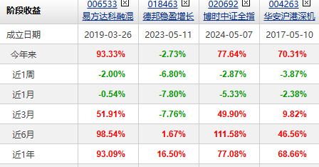 节后市场回调,所以板块基本都跟着下来了,$易方达科融混合$ 这个基金关注一段时间了,近一个月回调0.54%,近三个月51.91%,近6个月涨幅98.54%,近一年93.09%,持仓的是聚焦科技成长、新能源都是当前的热点,也能起到互补,成长叠加发内卷概念,科技成长中也有AI相关的方向,从各阶段的业绩上看基金经理调仓能力还是可见一斑。