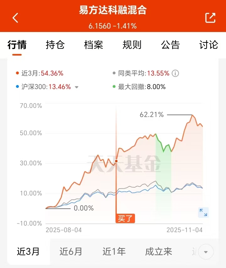 今天看持仓收益,这个$易方达科融混合(OTCFUND|006533)$体验下来还不错,包含科技、新能源和军工等多个成长赛道,布局均衡,近三个月上涨54.36%。听朋友说同系列的$易方达科讯混合(OTCFUND|110029)$也不错,这个主要是布局A股的,但用的是同一个策略。所以我也不打算押宝单一赛道了,轮动格局下我觉得还是均衡配置的产品会更安心。
