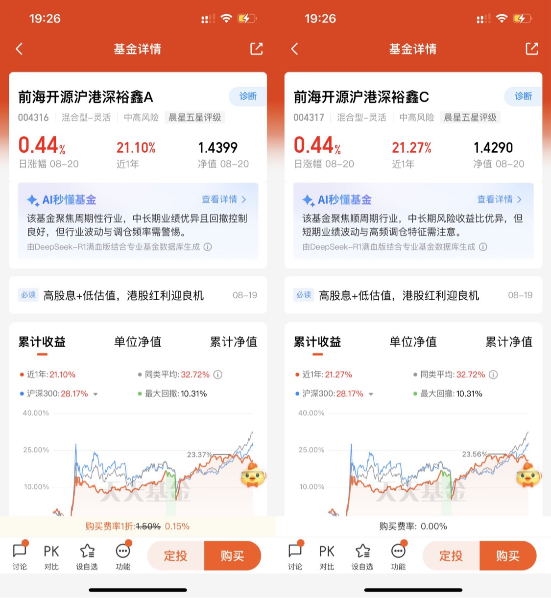 但红利资产并非没有风险。某些城商行看似诱人的股息率背后,隐藏着净息差萎缩和地方债务堆积的风险。我曾因忽视资产质量恶化的风险而付出惨痛代价,如今更加谨慎。经过深入调研,我选择了前海开源基金旗下的前海开源沪港深裕鑫灵活配置混合基金。该基金主要布局的是港股红利资产,成分股分红持续性强,且基金在近三年市场波动中展现出“跌时抗跌,涨时跟涨”的特质。