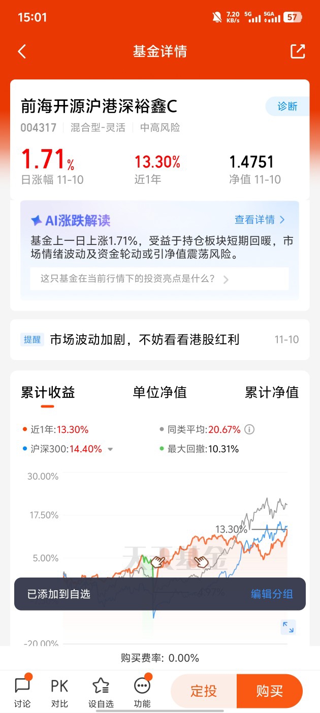 总的来说,我选择前海开源沪港深裕鑫C,是因为它满足了我当前的投资需求:既要稳健的红利收益,又要把握港股低估值的机遇,还要有专业的基金管理人保驾护航。在这个充满不确定性的市场中,这种“进可攻、退可守”的投资工具,正是我资产配置中不可或缺的重要组成部分。