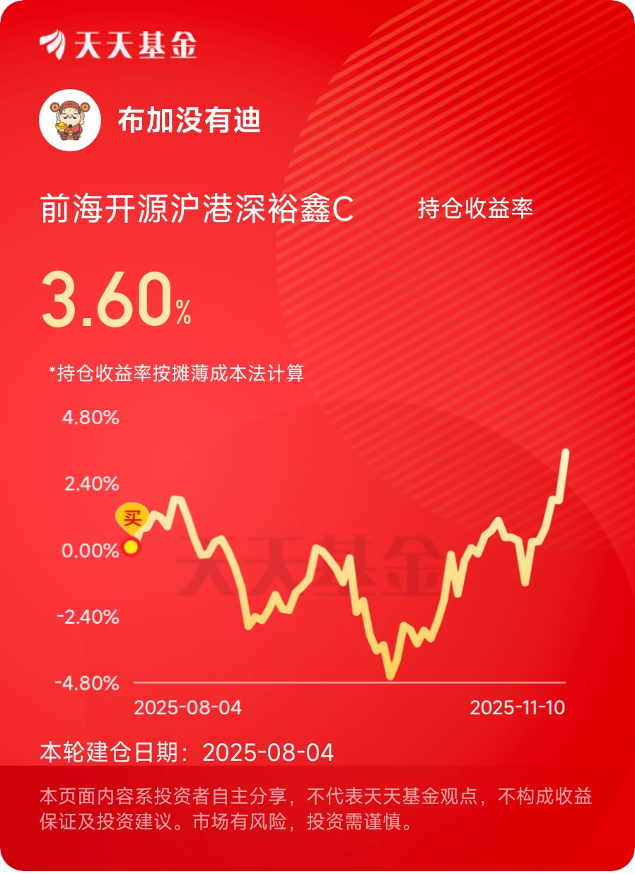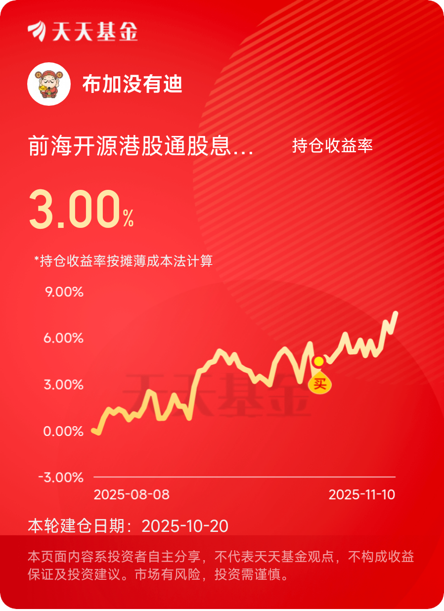 其次是对前海开源基金投研实力的信任。作为深耕红利投资领域的头部基金公司,前海开源在沪港深市场布局多年,拥有成熟的投研体系和专业的基金经理团队。无论是对港股市场的政策解读、行业趋势判断,还是对个股的基本面挖掘,都展现出深厚的功底。我在选择基金时,始终相信“专业的事交给专业的人”,而这两只基金长期稳定的业绩表现,也印证了前海开源投研团队的实力,让我放心把资金托付。