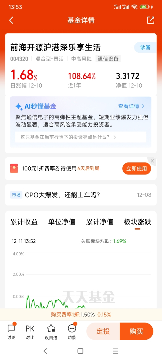 但这次,咱必须“苟住别浪”!隔壁老王追涨杀跌三个月,账户绿成草原,而我默默开启“定投+卧倒”模式:管它K线图上蹿下跳,我自岿然不动。毕竟,CPO不是短线快消品,而是AI算力的“地基”。就像当年错过比特币的人常说:“站在风口上,猪都能飞。”但真相是——飞起来的可能是别人家的猪,而我的猪还在泥潭里扑腾。所以,这次我选择和前海开源沪港深乐享生活锁死,让专业团队替我找“会飞的猪”。