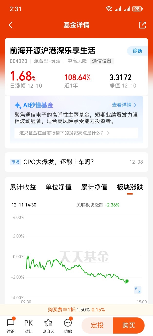 $前海开源沪港深乐享生活$ 当看到前海开源沪港深乐享生活的涨幅数据时,我内心满是复杂与遗憾。这支聚焦“乐享生活”主题的混合型基金,在市场波动中走出了独立行情,而我却在一次次犹豫中与这份收益擦肩而过。复盘这段投资历程,既是剖析基金本身的投资价值,更是对自身投资心态的深刻审视。