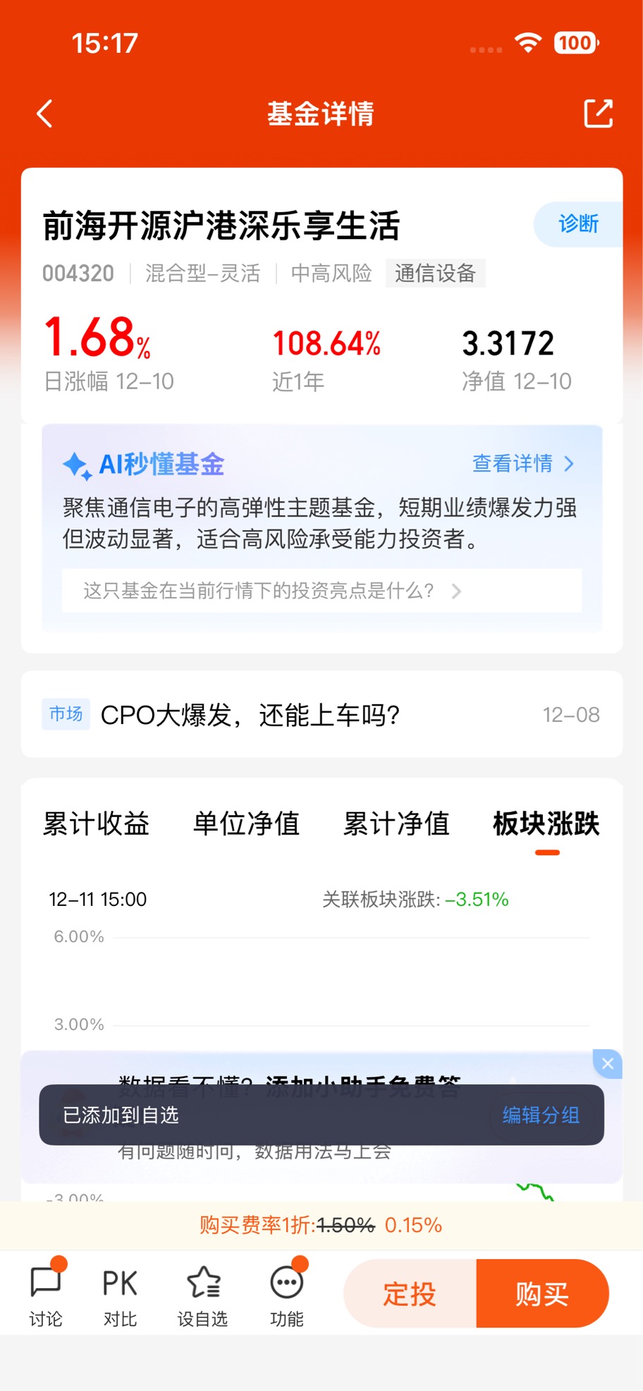 $前海开源沪港深乐享生活$ 2025年8月,CPO板块因市场担忧产能过剩出现大幅调整,不少投资者恐慌抛售,我身边也有朋友割肉离场。但我选择坚守前海开源沪港深乐享生活基金,这份坚持最终换来了丰厚回报,也让我深刻理解了在科技赛道投资中“长期主义”的真谛。